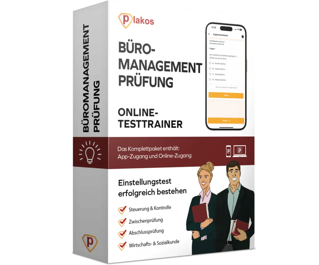 Um Dich hierbei zu unterstützen, haben wir einen Online Kurs oder ein Bürokaufleute Buch zum Üben ins Leben gerufen, der bzw. das sich mit den Prüfungsfragen beschäftigt, die im Allgemeinen bei dieser Prüfung vorkommen. Diese Lernmittel beschäftigtigen sich unter anderem mit den Themen